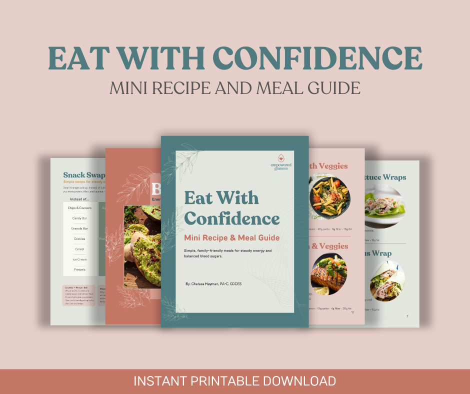 Enjoy 16 balanced recipes (snacks, breakfasts, lunches, and dinners) that are quick to prepare and designed to keep your blood sugars steady.