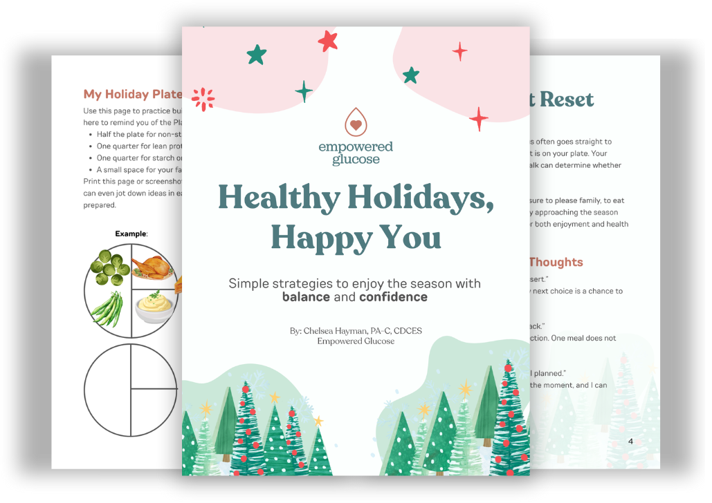 Feel more in control around holiday foods, protect your blood sugar, and still enjoy the traditions you love. This printable guide gives you realistic swaps, plate visuals, and stress-free tips you can use right away.